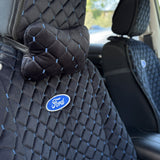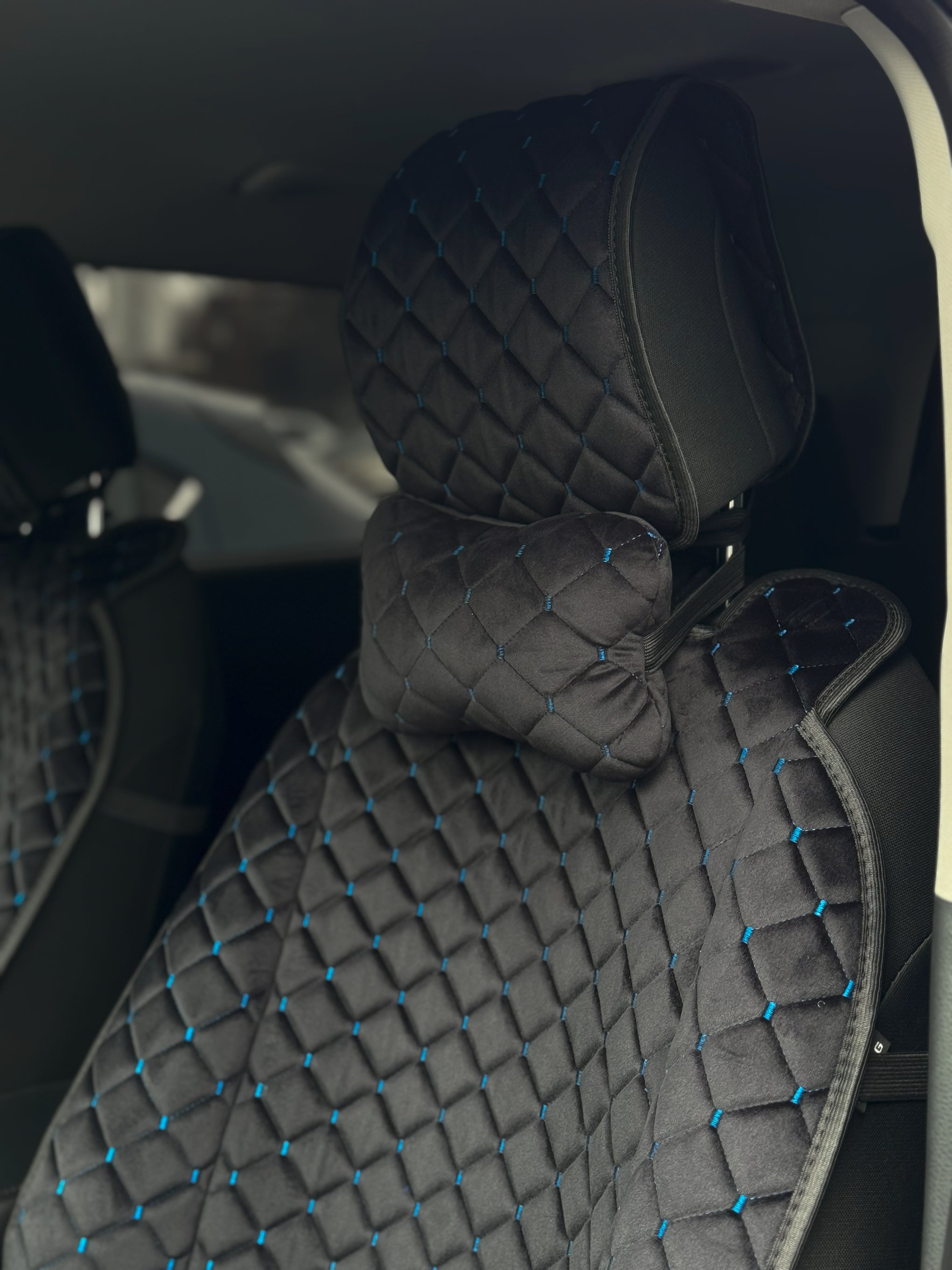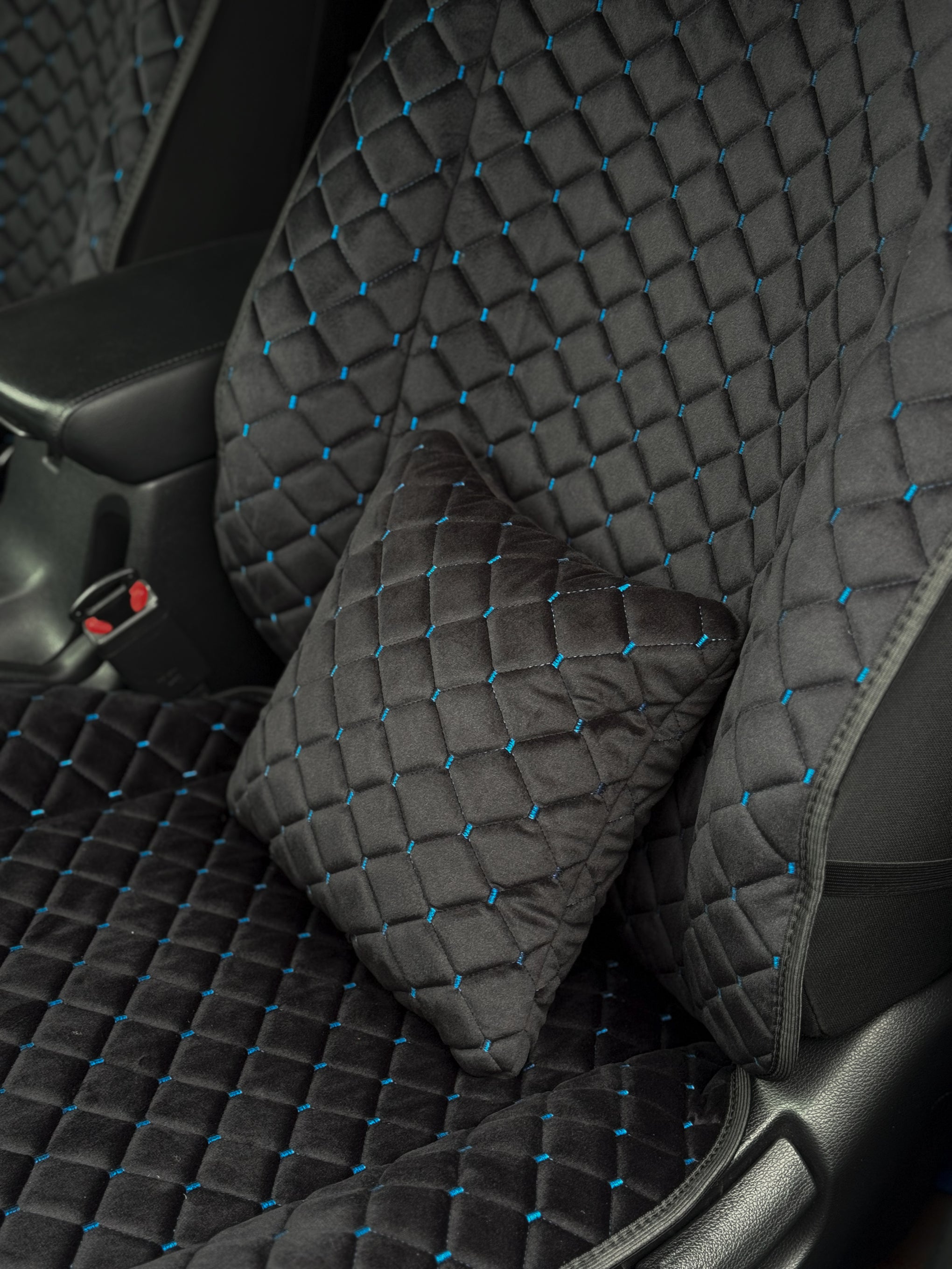 Накидки з алькантари преміум “Чорний ромб із синьою ниткою”