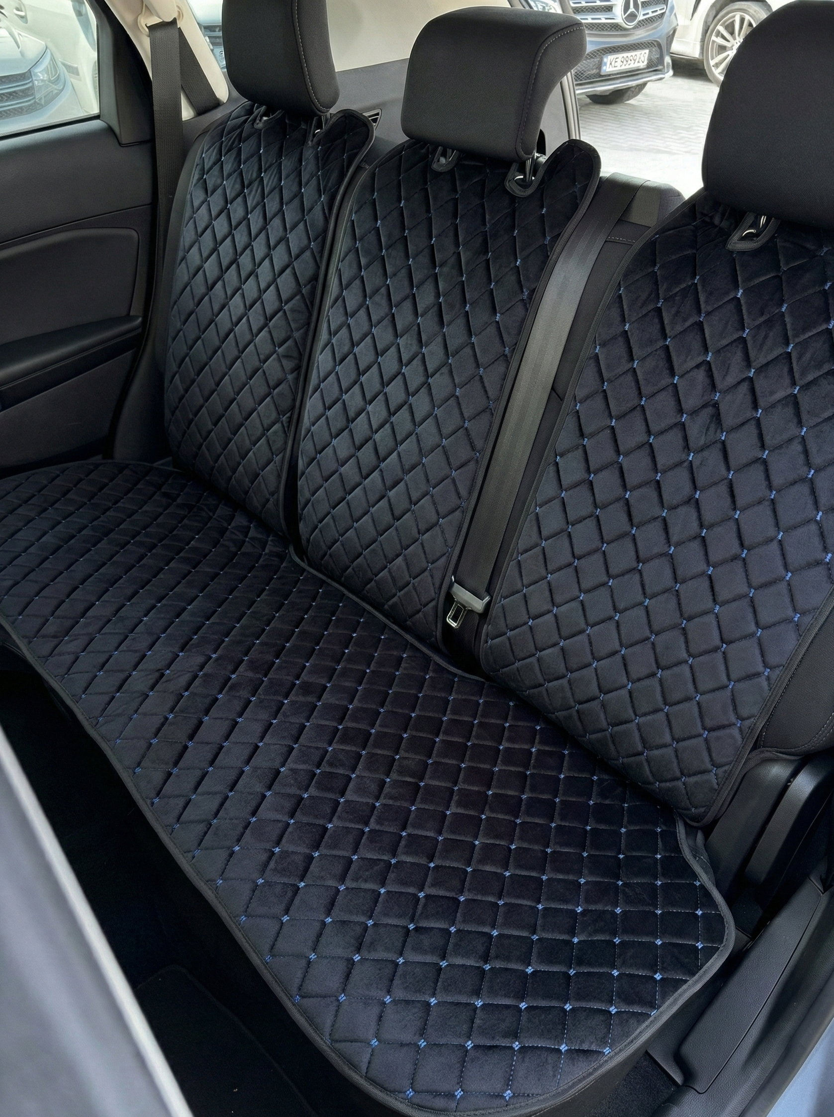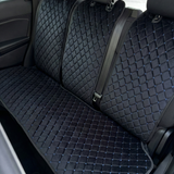 Третя спинка на задній ряд з алькантари преміум “Чорний ромб із синьою ниткою”
