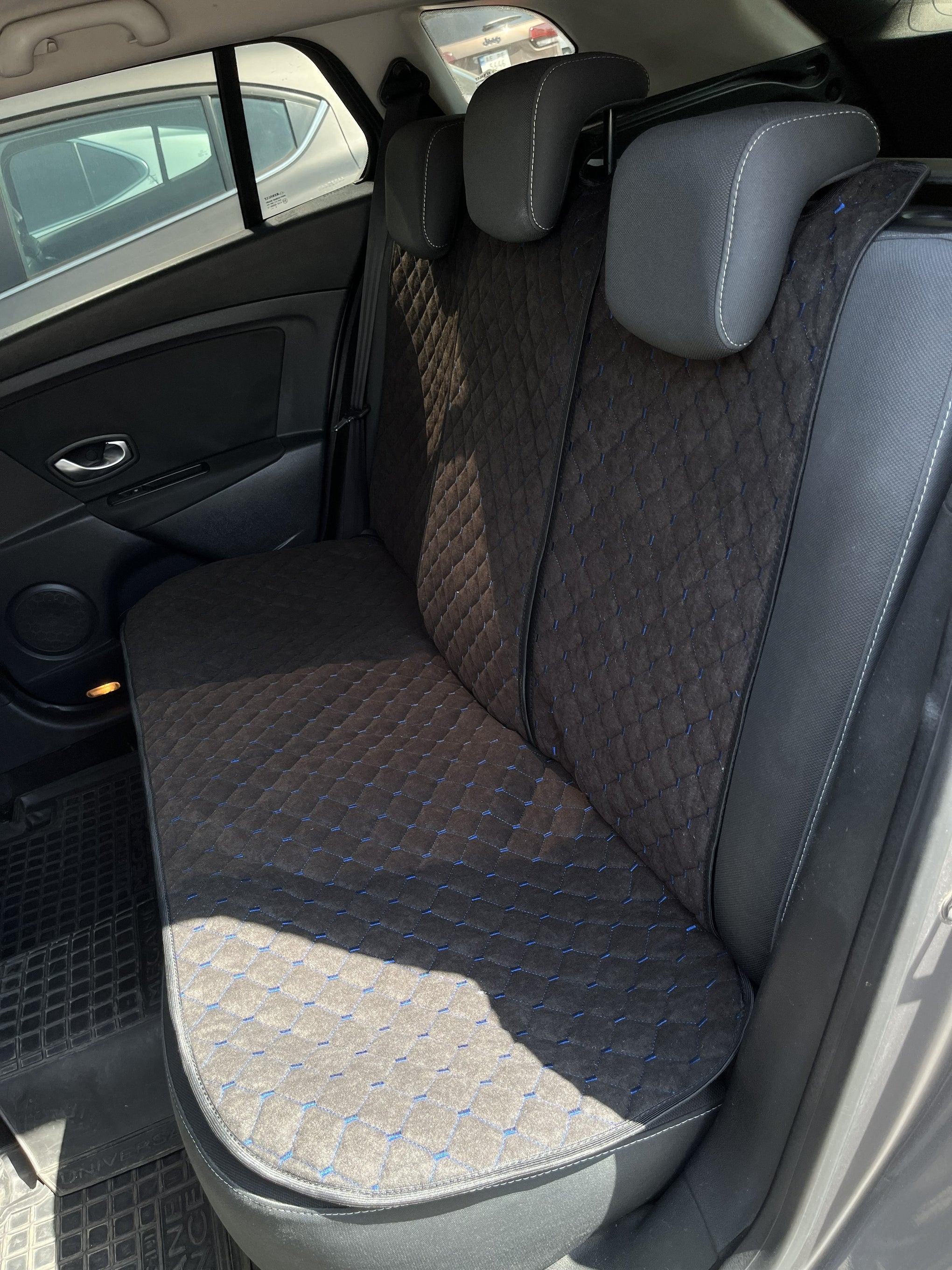 Третя спинка на задній ряд з алькантари стандарт “Чорний ромб із синьою ниткою”