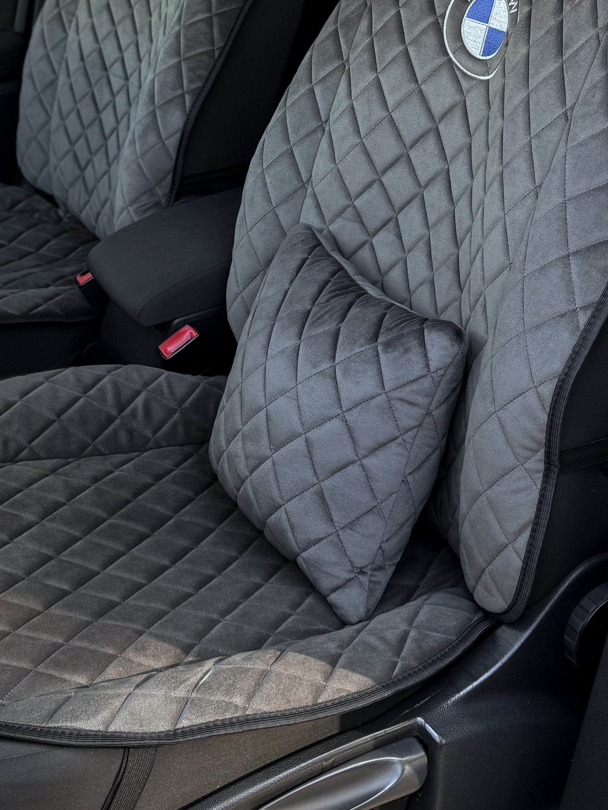 Подушка під спину з алькантари стандарт “Темно-сірий ромб“