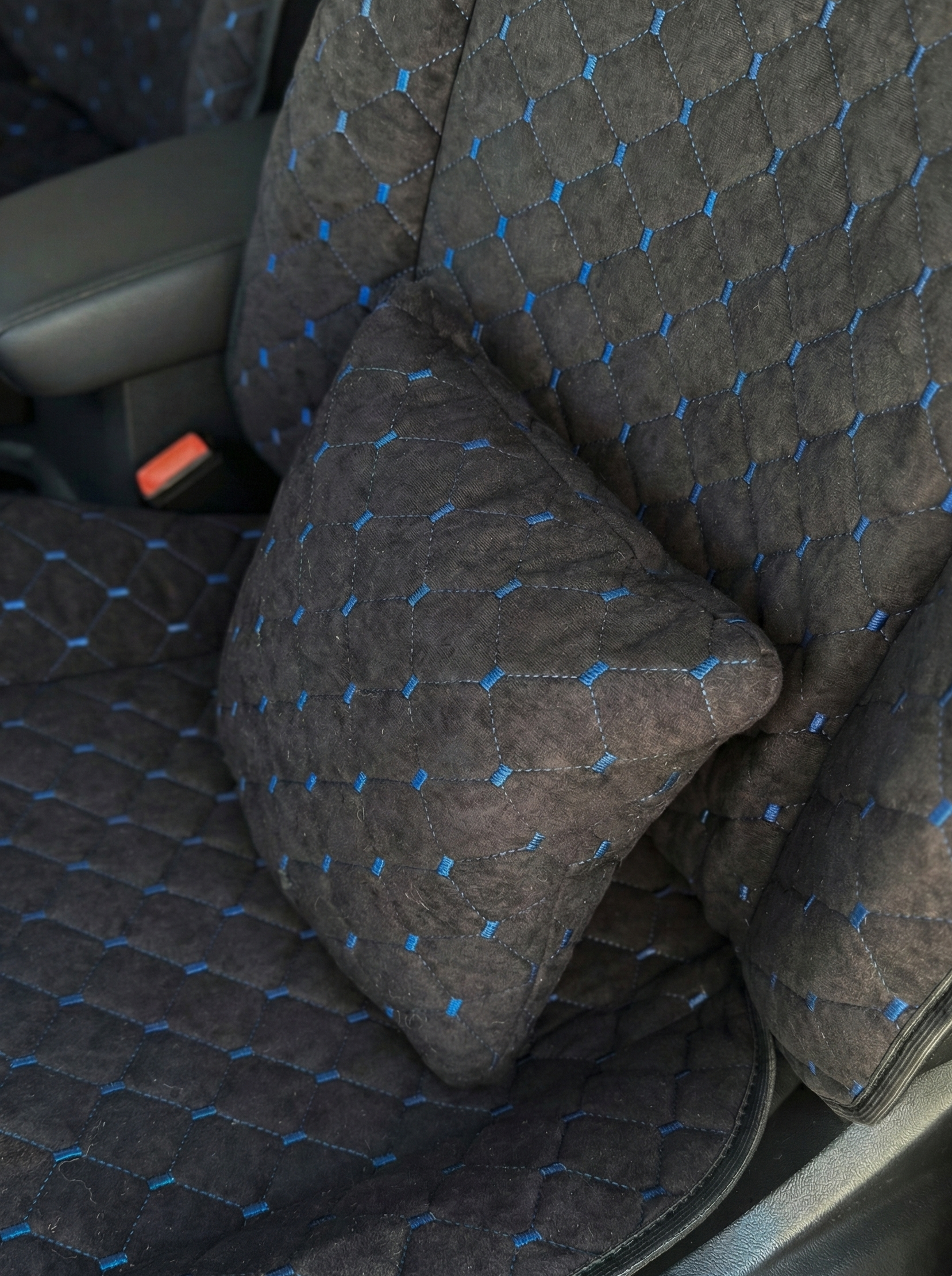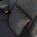 Подушка під спину з алькантари стандарт “Чорний ромб із синьою ниткою“