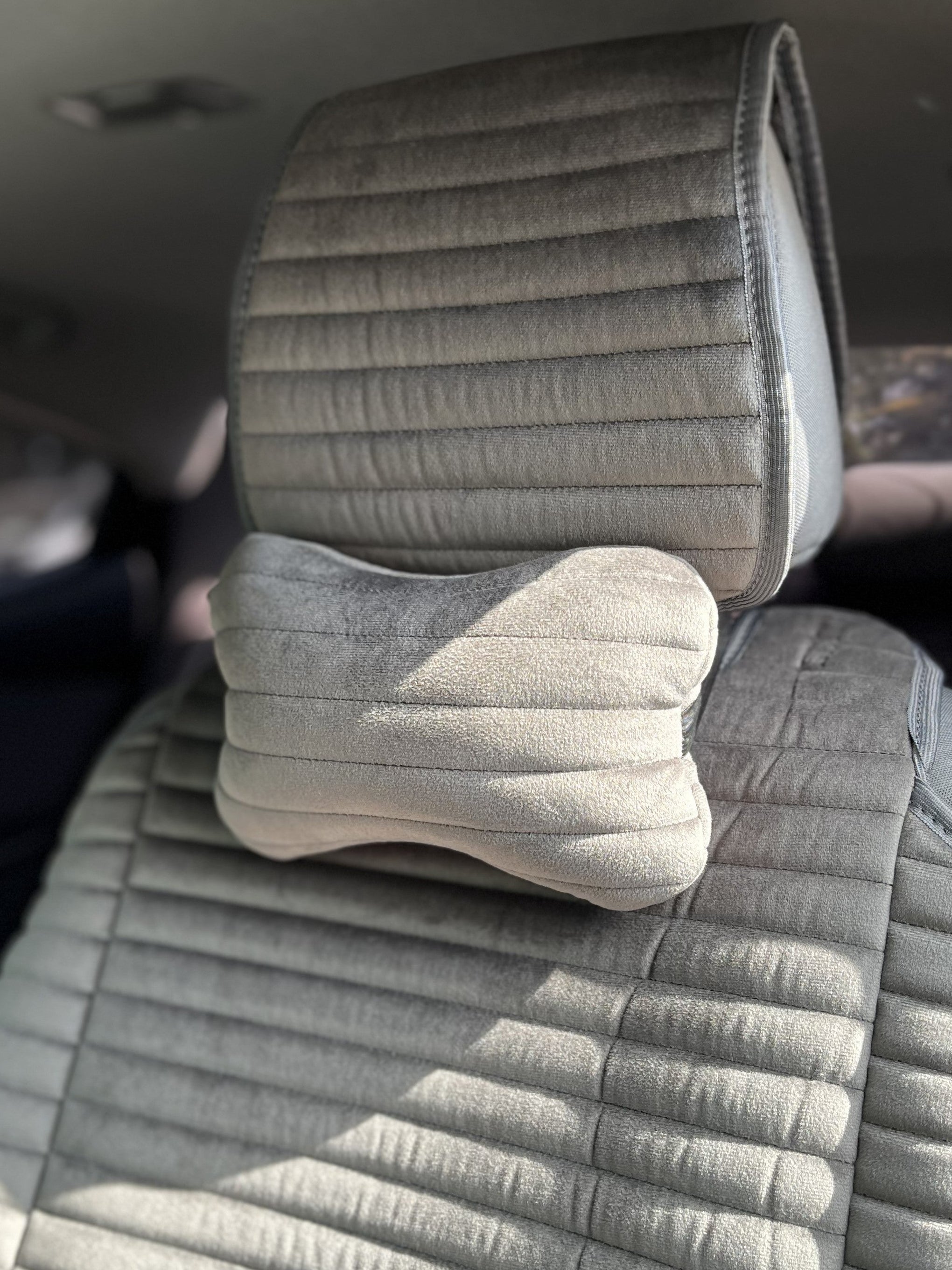 Подушка під шию з алькантари преміум “Темно-сірий горизонт“