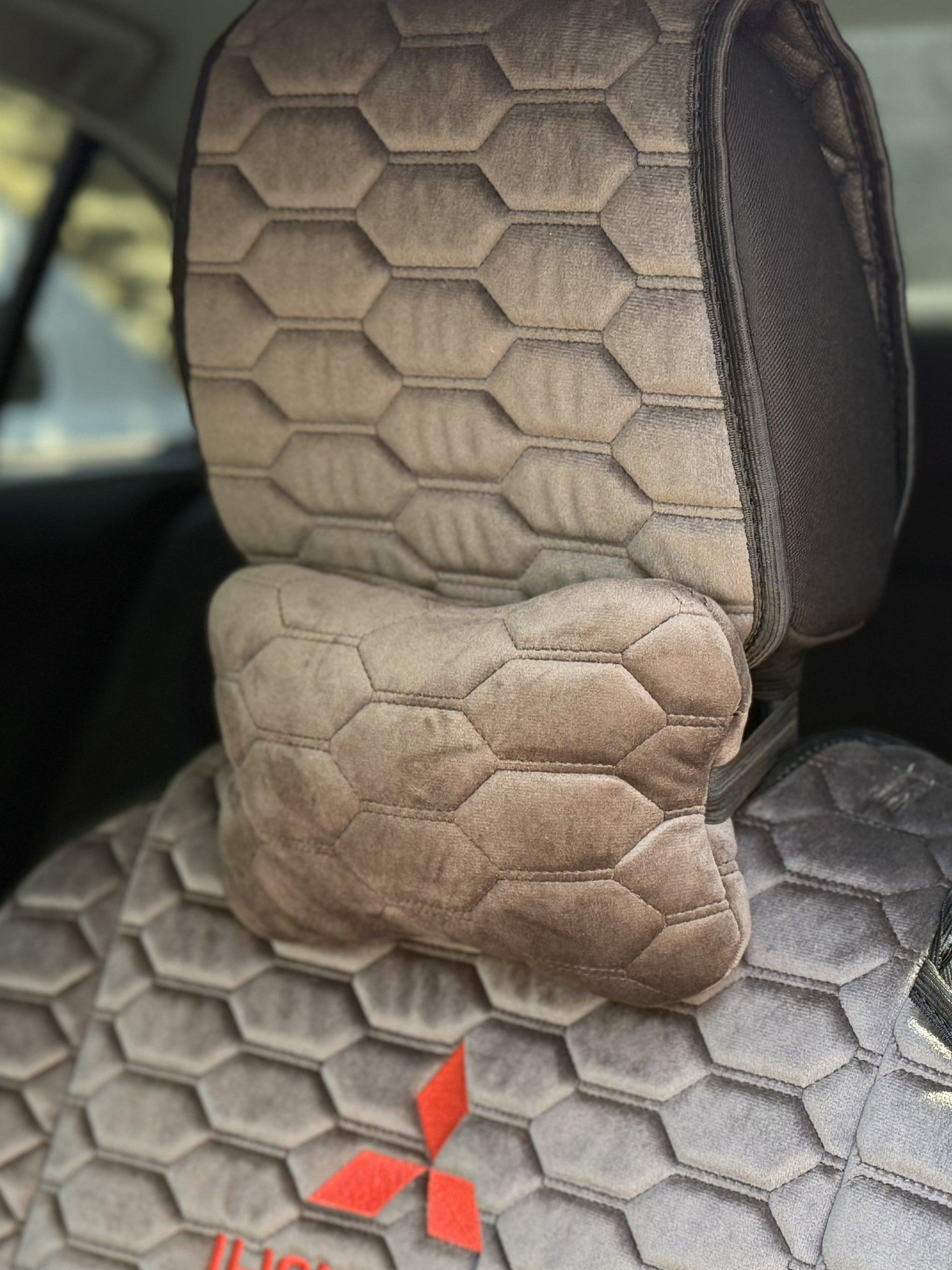 Подушка під шию з алькантари преміум “Темно-сірі ланцюги“