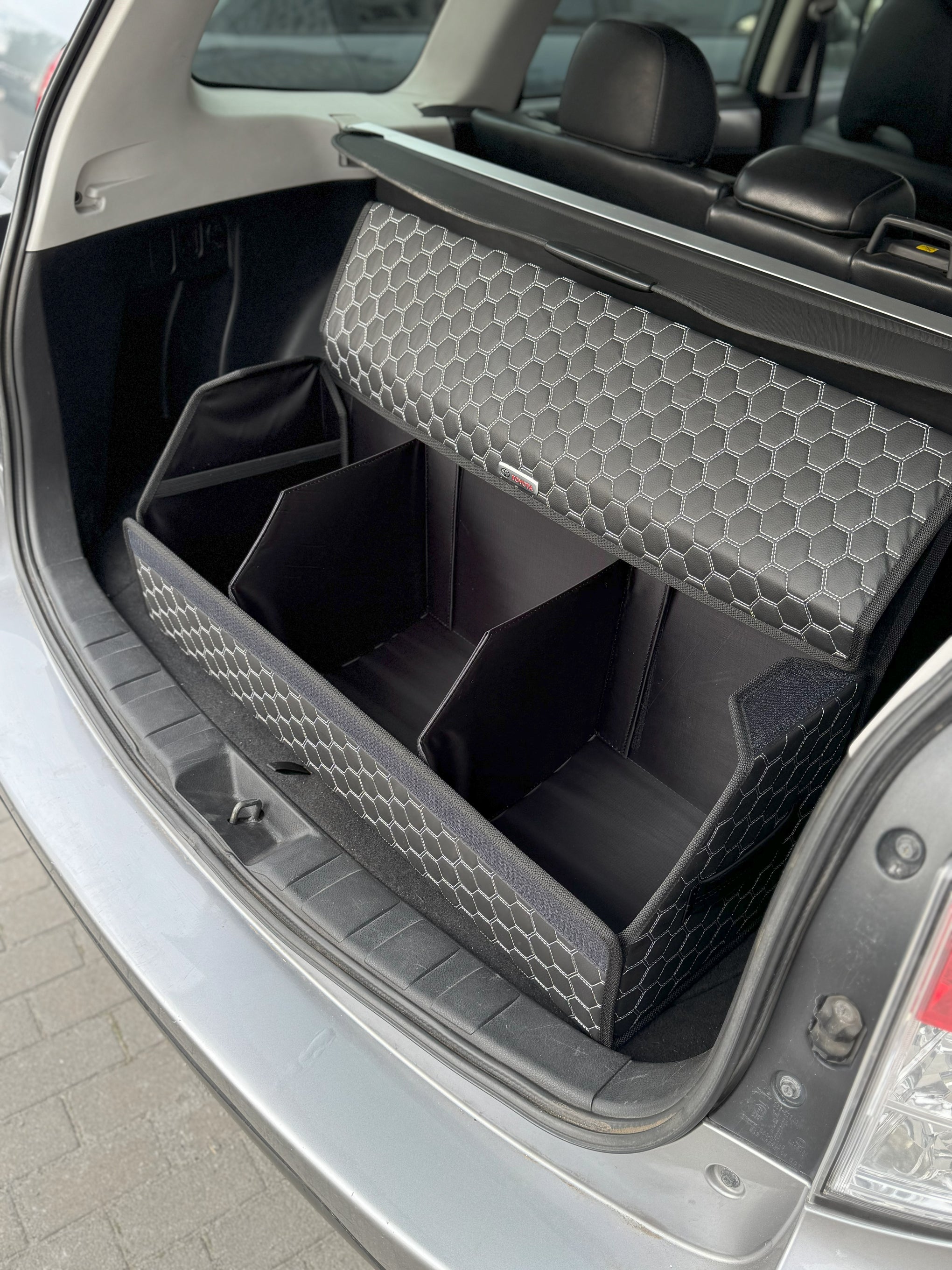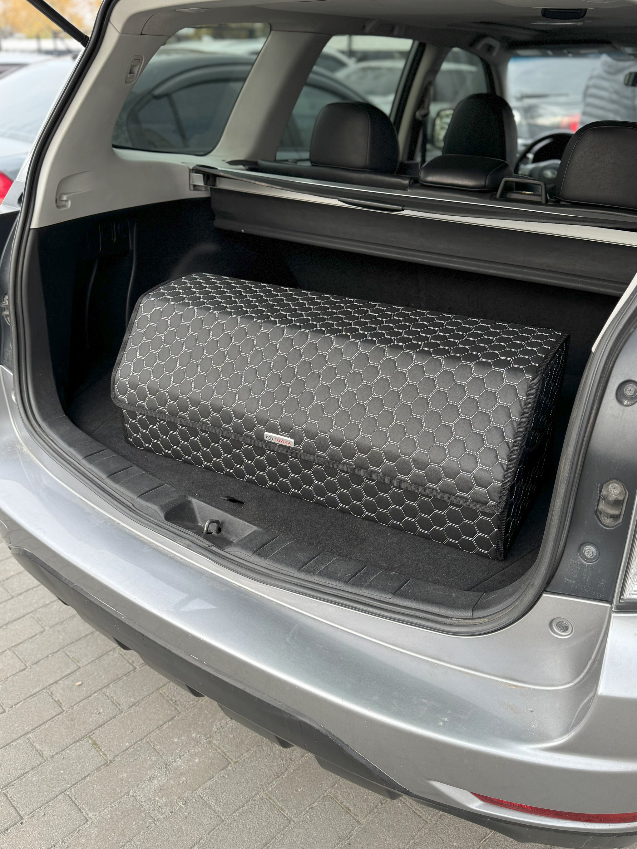 Органайзер у багажник авто з екошкіри “Чорний сота з сірою ниткою”