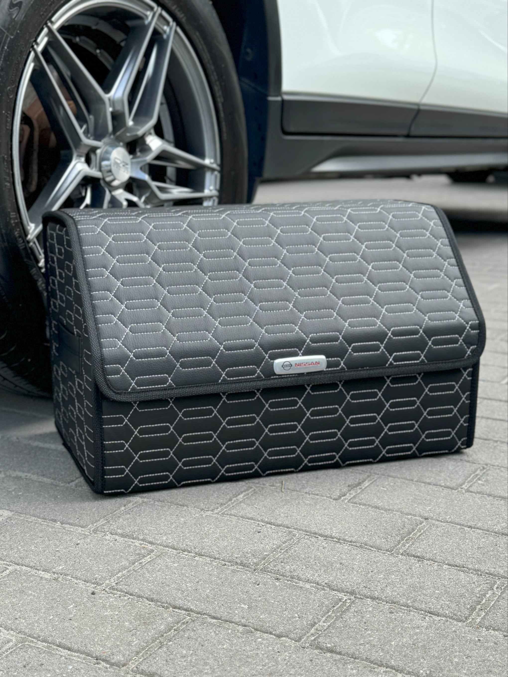Органайзер у багажник авто з екошкіри “Чорні ланцюги з сірою ниткою”