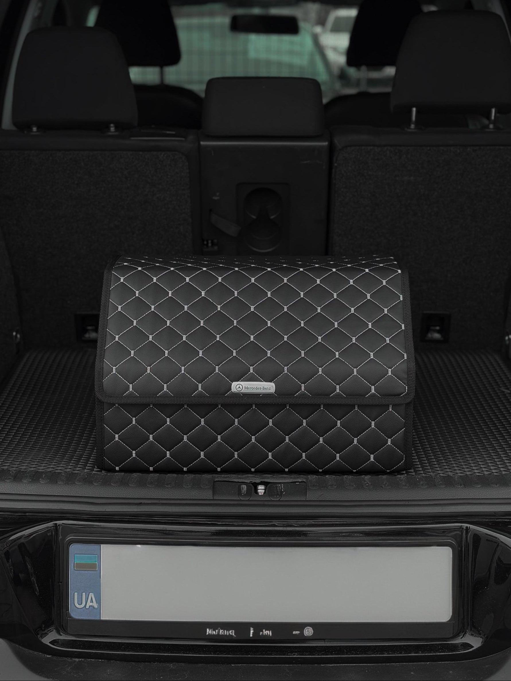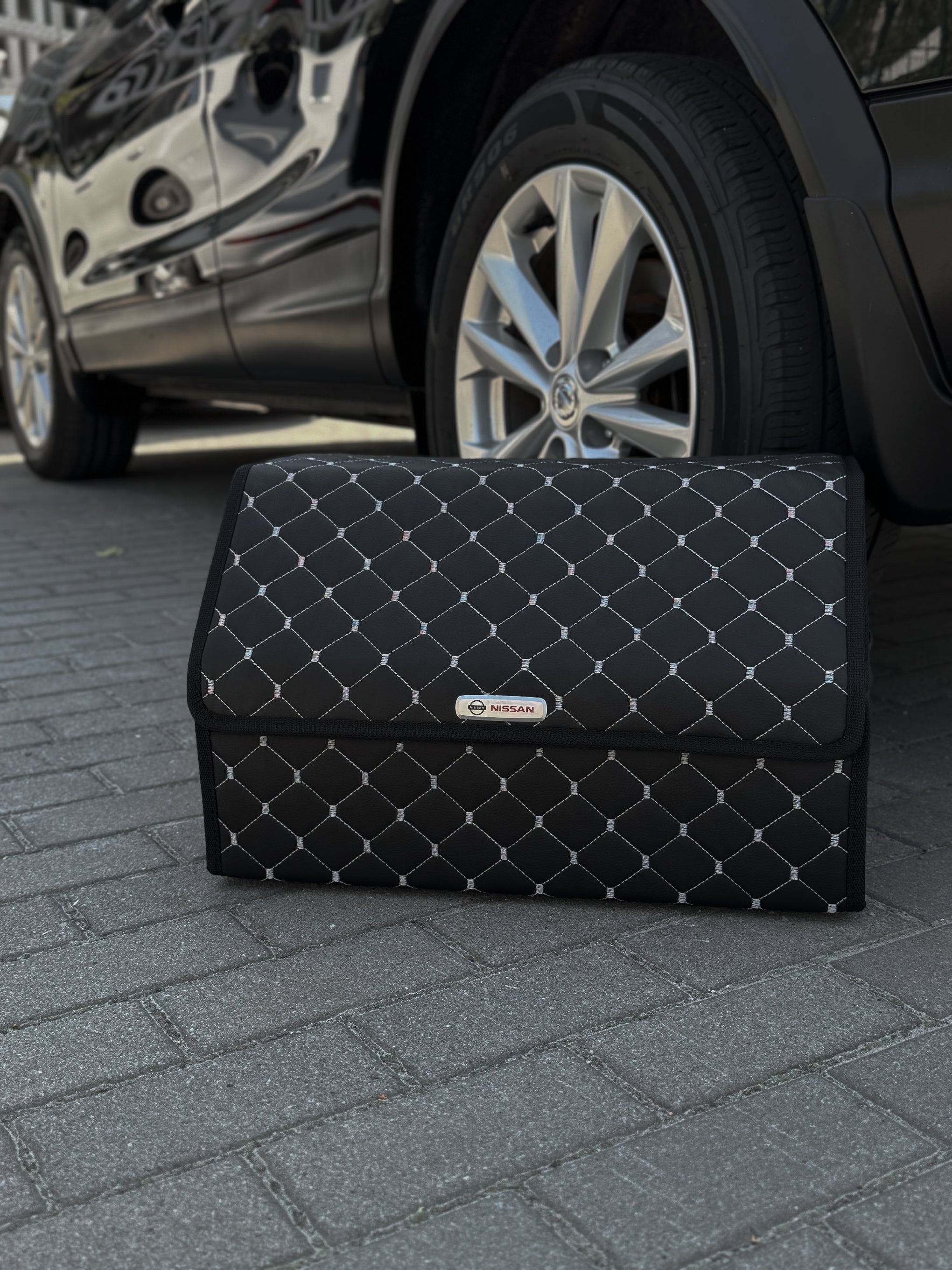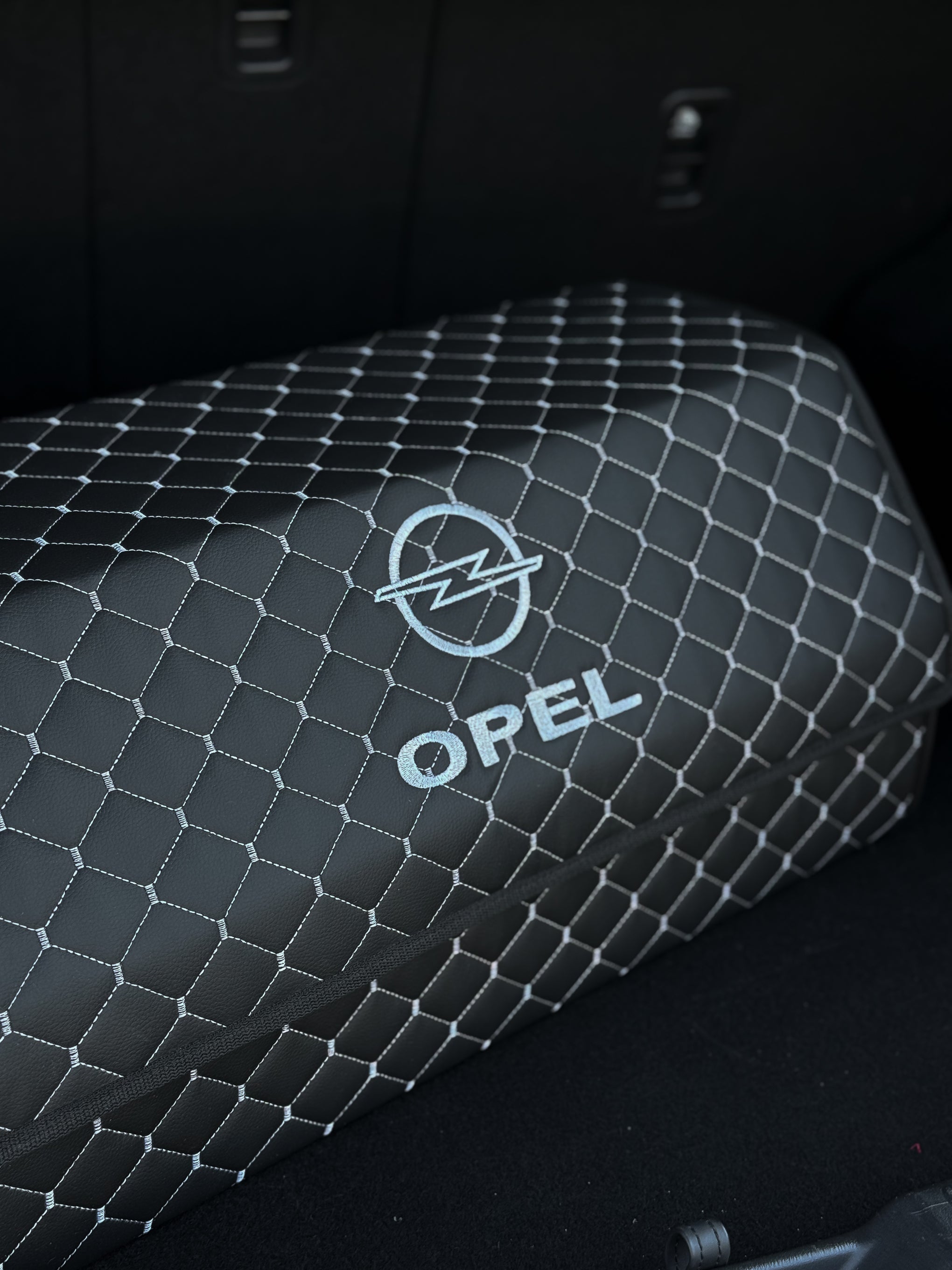 Органайзер у багажник авто з екошкіри “Чорний ромб з сірою ниткою”