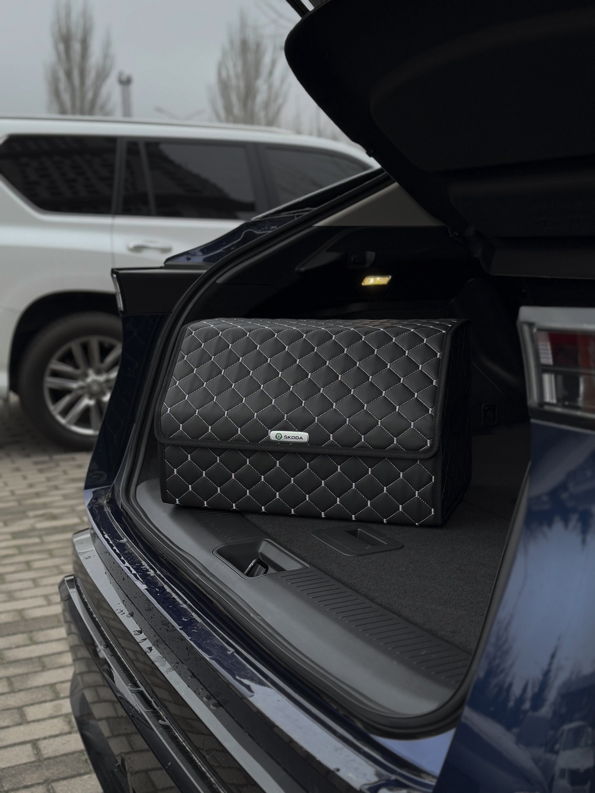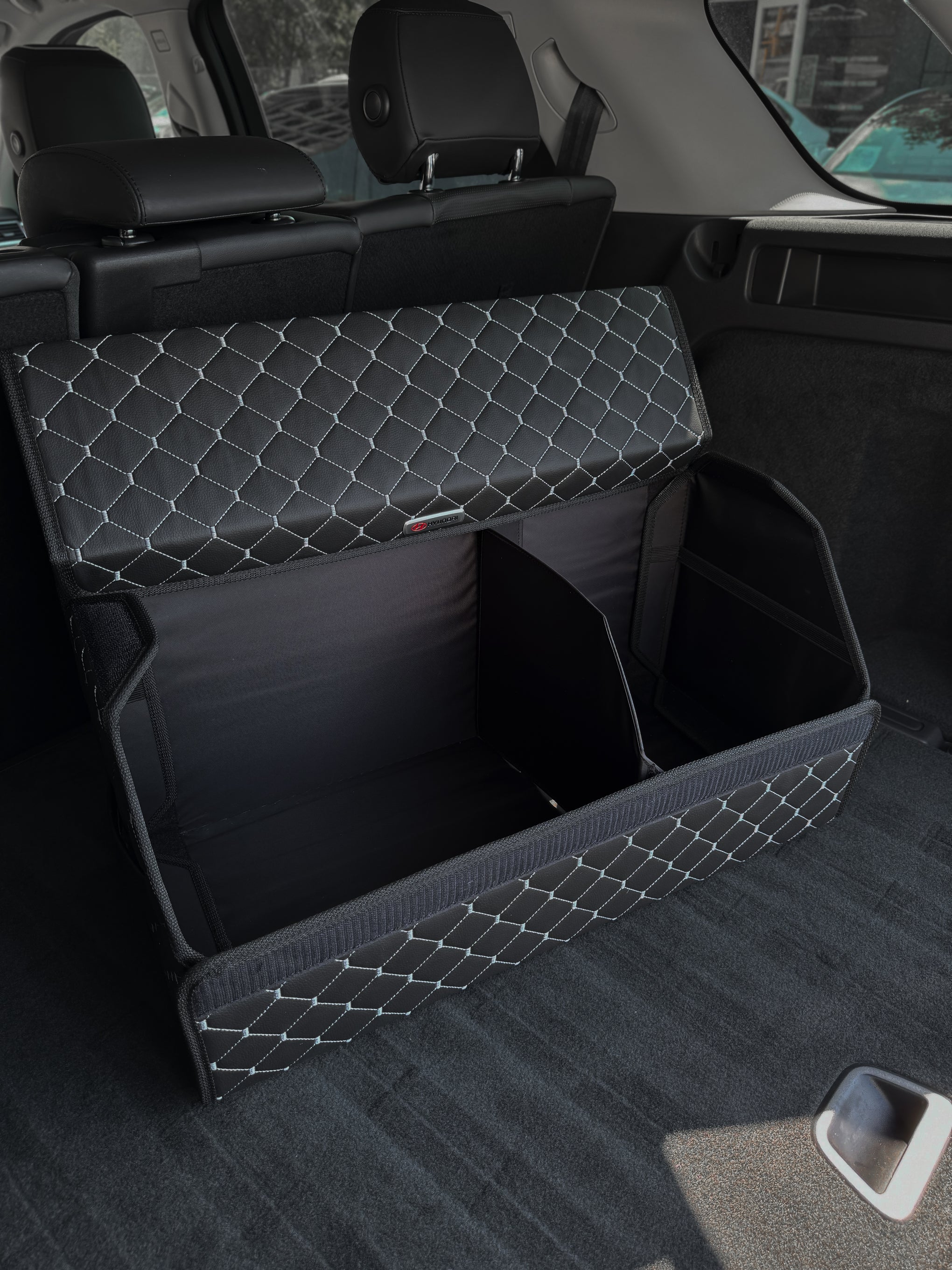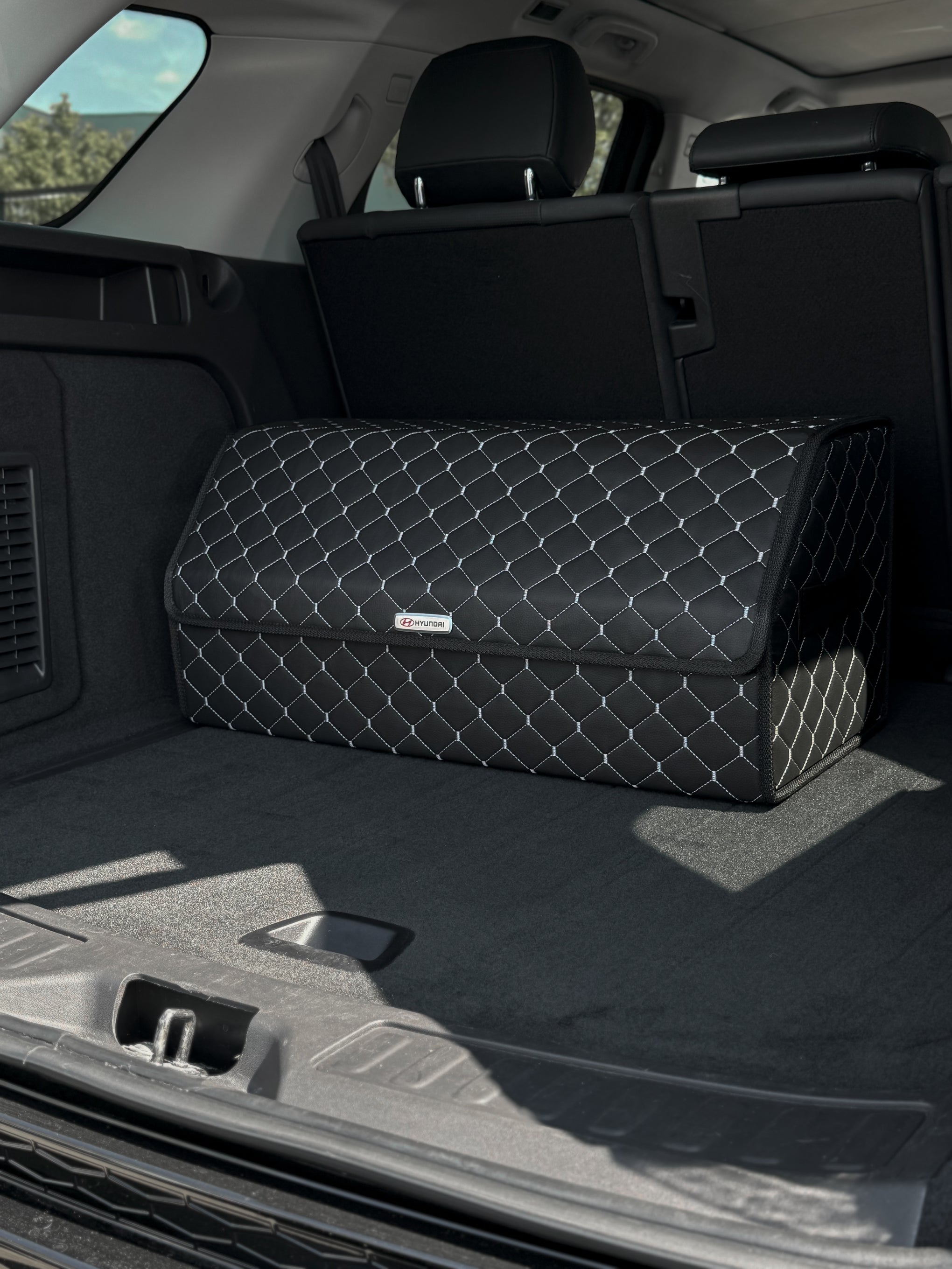 Органайзер у багажник авто з екошкіри “Чорний ромб з сірою ниткою”
