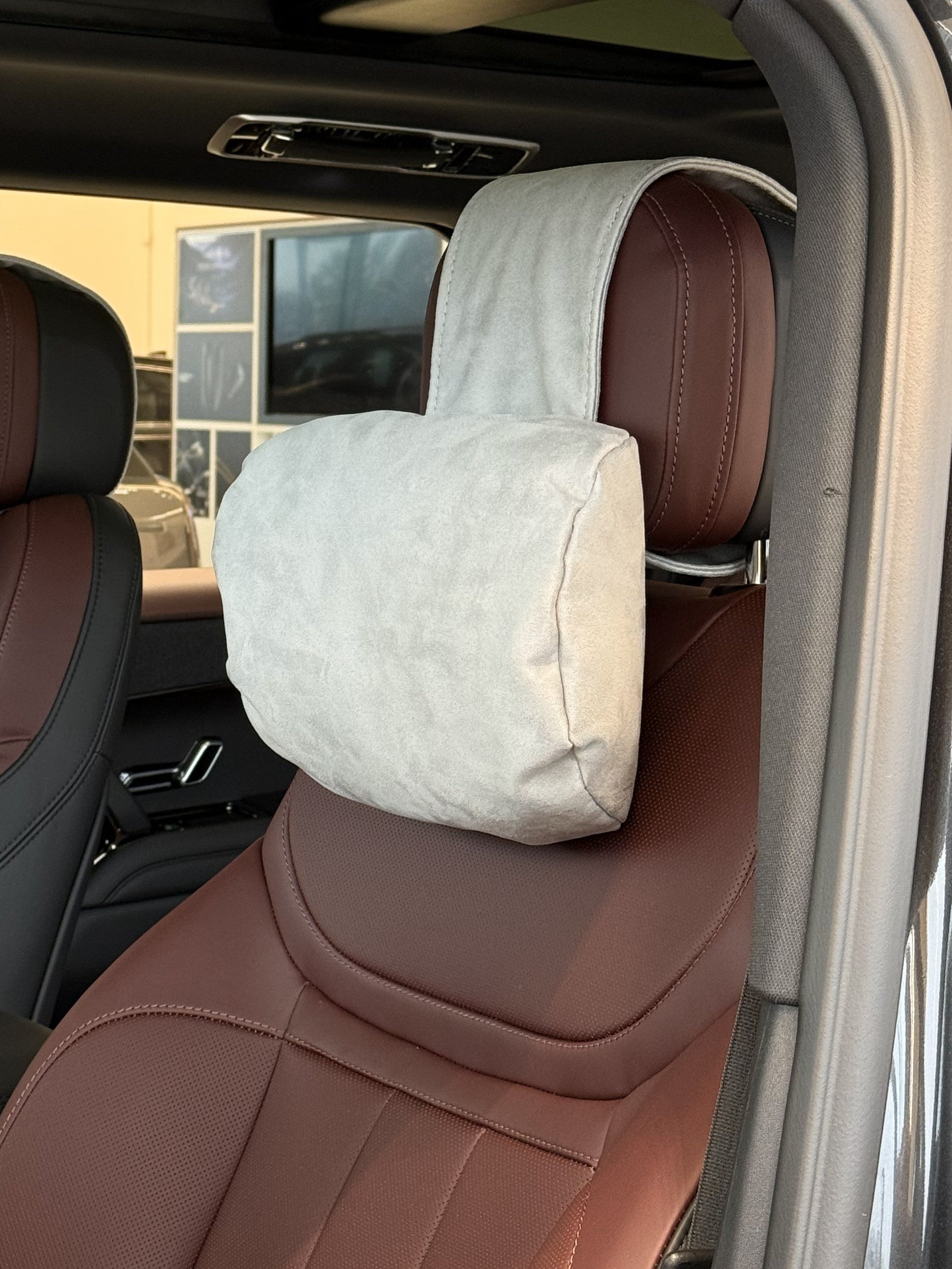 Подушка з оригінальної алькантари під шию “Сірий“