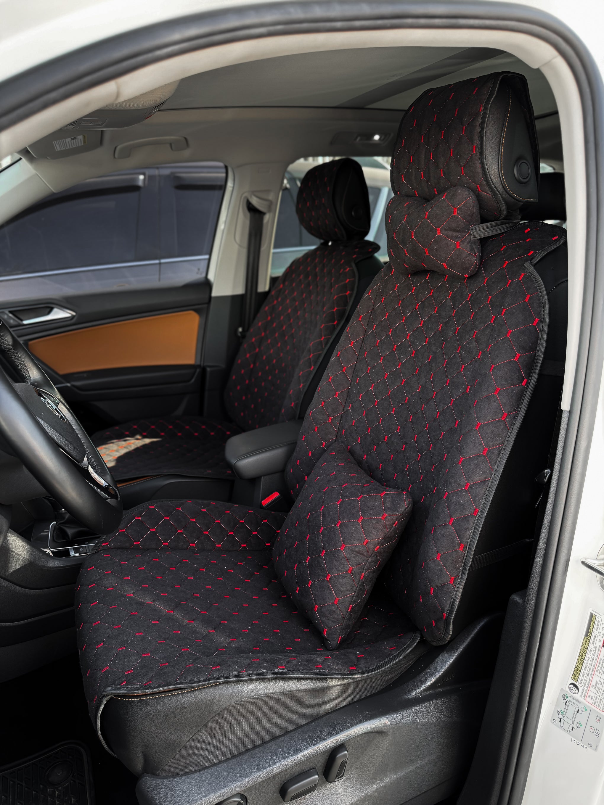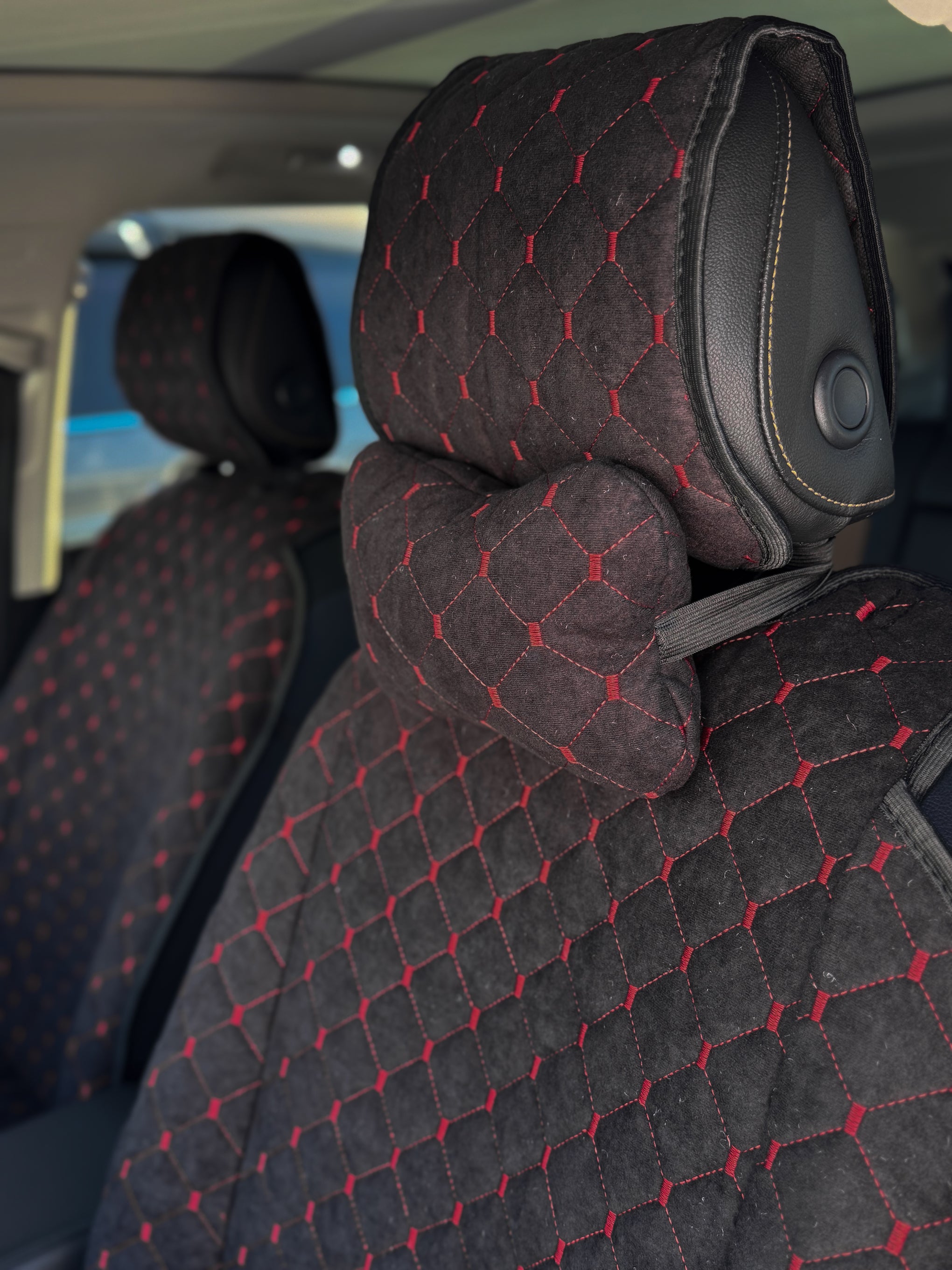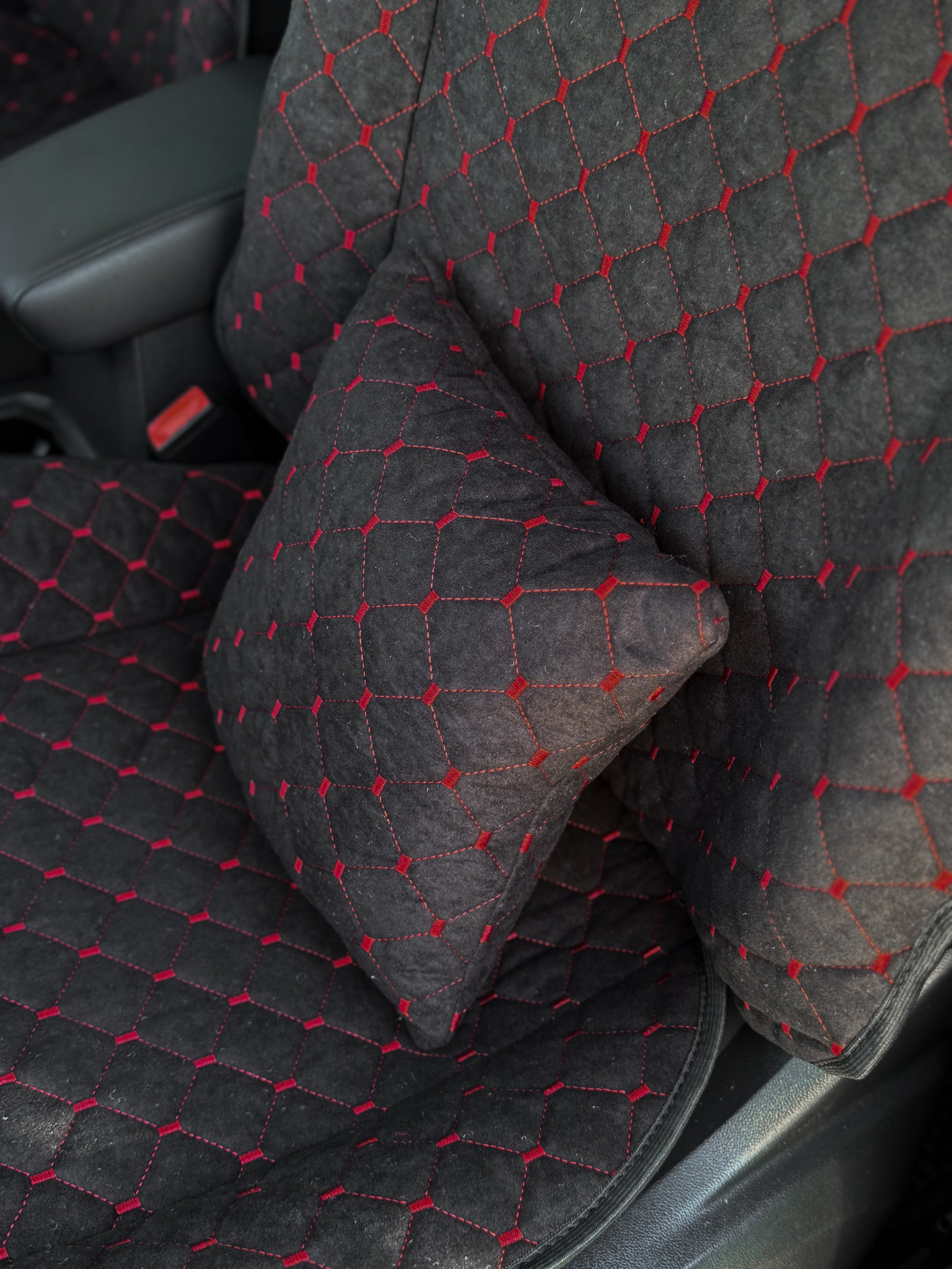 Накидки з алькантари стандарт “Чорний ромб із червоною ниткою”