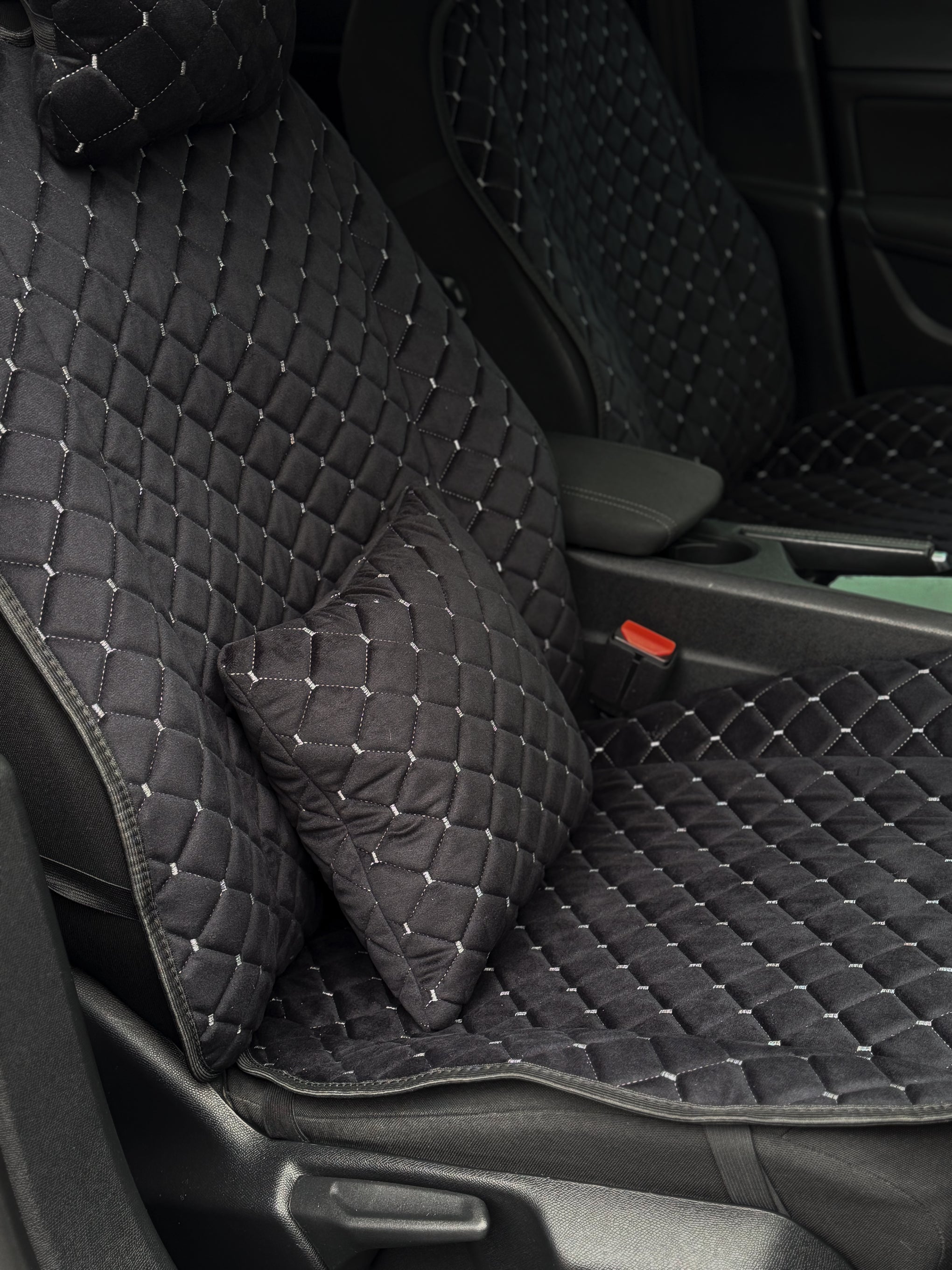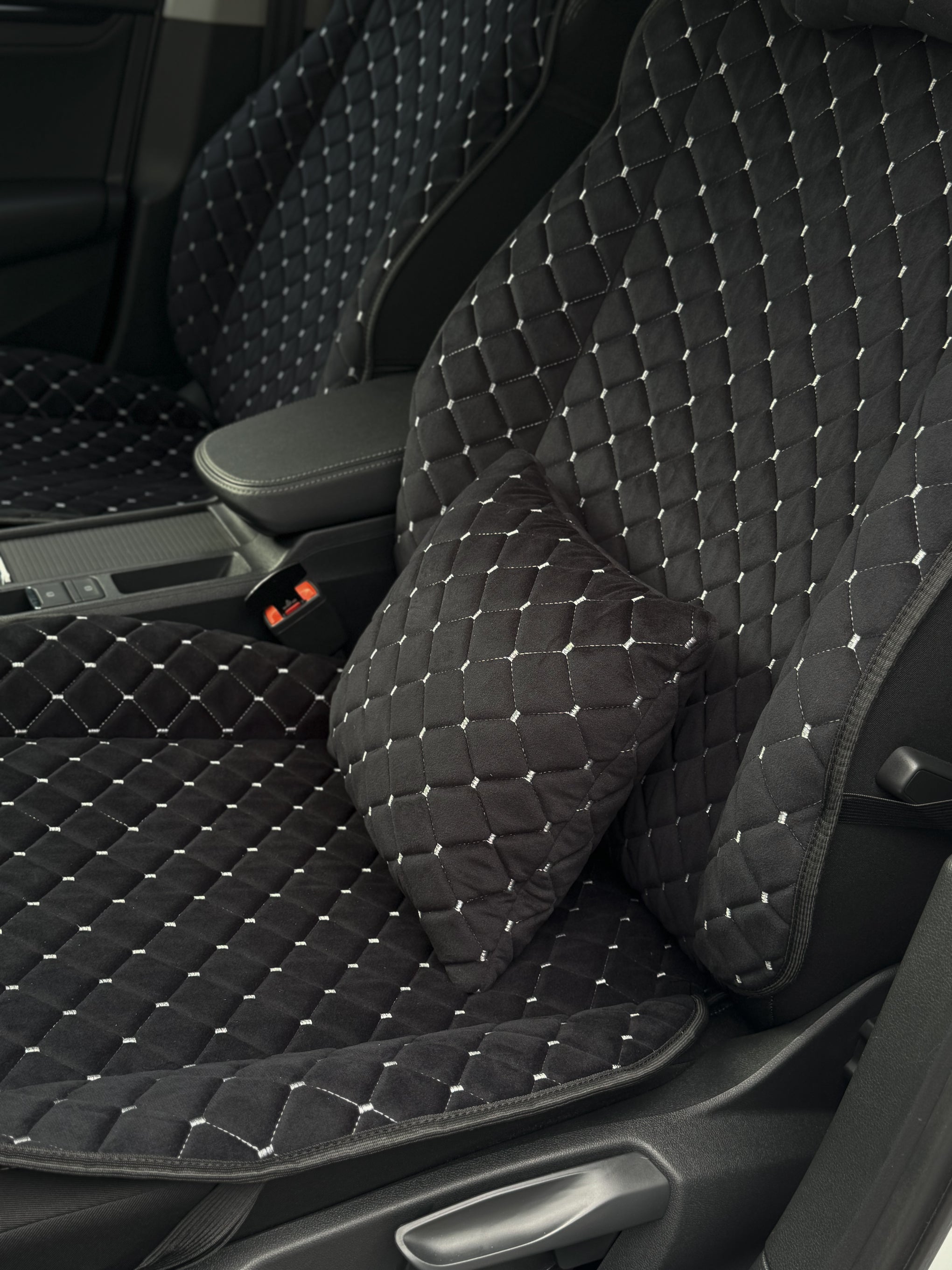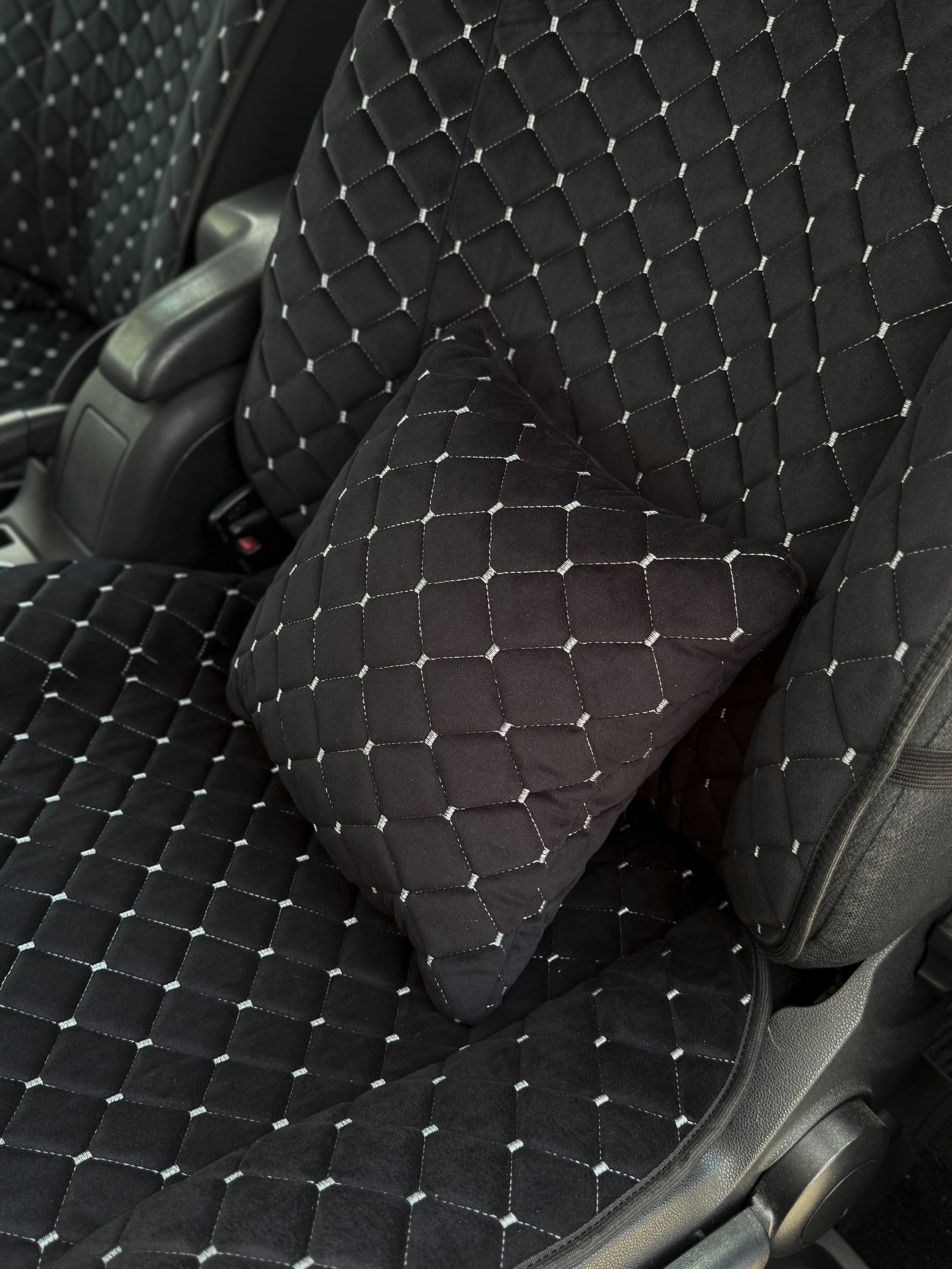 Замовив накидки з алькантари з візерунком ромб. Матеріал дуже приємний на дотик, шви рівні, посадка ідеальна. Сидіння виглядають охайно та дорого, комфорт під час поїздок помітно підвищився. Дякую за чудову роботу!