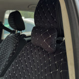 Накидки з алькантари преміум “Чорний ромб із сірою ниткою”